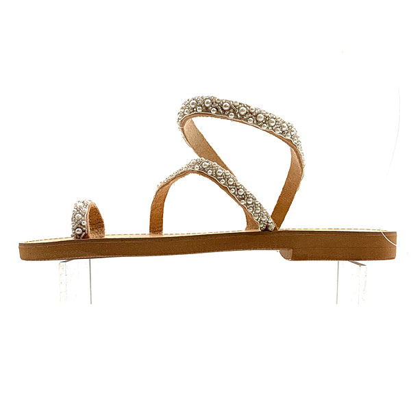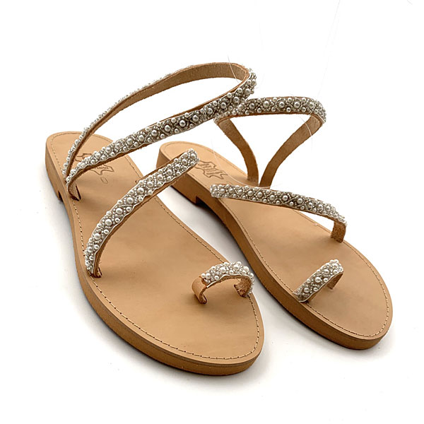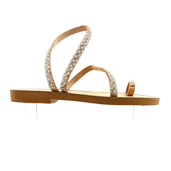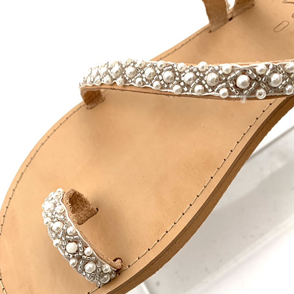 Χειροποίητα δερμάτινα σανδάλια σε φυσικό χρώμα, με ελαφριά cel σόλα, στολισμένα στο χέρι με τρέσσα με μικρές πέρλες σε λευκό χρώμα. Φόρμα κανονική. Διαθέσιμα κατόπιν παραγγελίας σε 3 - 4 εργάσιμες ημέρες. Αλλαγές δεν γίνονται δεκτές.