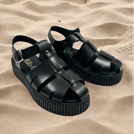 181127 ATLANTA Μαύρο | Χειροποίητα Οικολογικά Δερμάτινα Σανδάλια