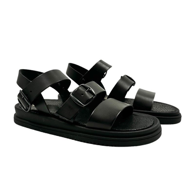 181120 CHICAGO Μαύρο | Χειροποίητα Οικολογικά Δερμάτινα Σανδάλια