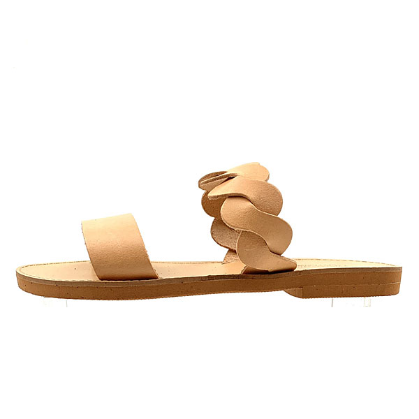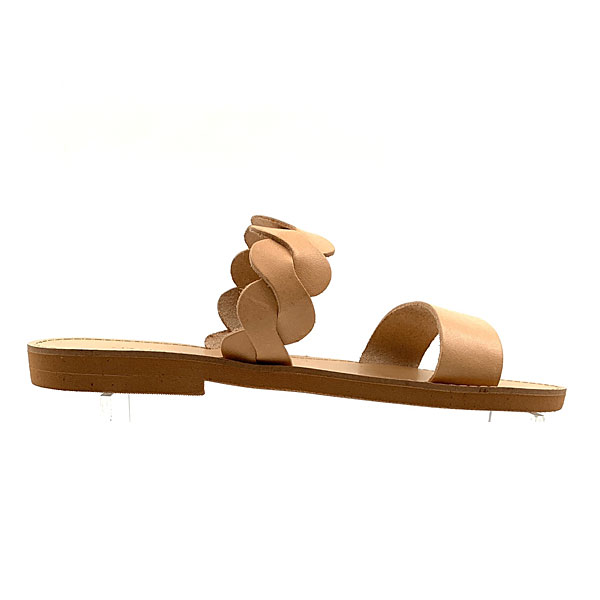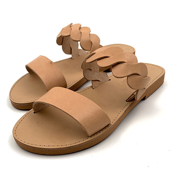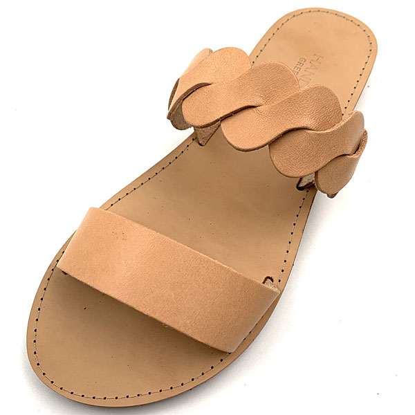 Γυναικεία σανδάλια Ελληνικής κατασκευής σε χρώμα φυσικό, με οικολογικό πάτο και δερμάτινο άνω μέρος. Φόρμα κανονική.