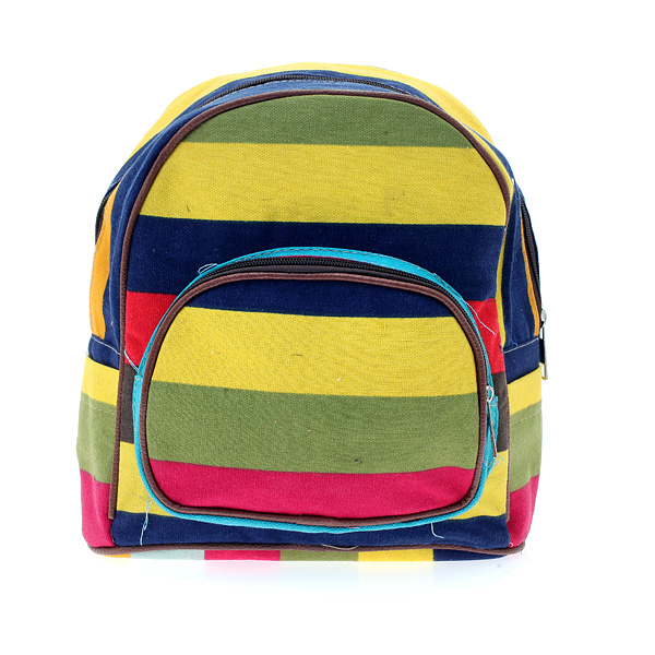 Μικρή Τσάντα Πλάτης με Ριγέ Σχέδιο. Διαθέτει εξωτερική τσέπη με φερμουάρ στο μπροστινό μέρος