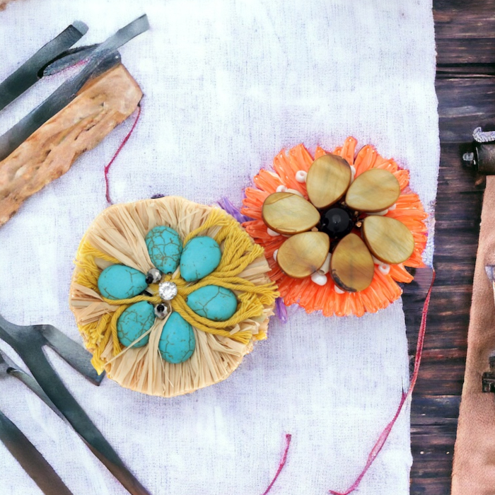 Ψάθινο λουλούδι με διακοσμητικές χάντρες.